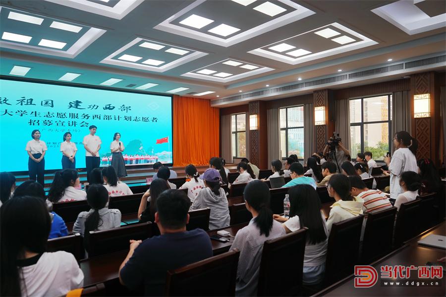 为大力弘扬“奉献、友爱、互助、进步”的志愿精神,帮助更多青年大学生认识西部计划、熟悉西部计划、参与西部计划,到基层和人民中去建功立业,西部计划广西项目办在全区范围内通过层层选拔,组建了由20名优秀西部计划志愿者组成的广西西部计划招募宣讲团,于4月21日至25日分赴全区11个地市26所高校开展西部计划招募宣讲活动,并通过线上同步直播的方式,扩大宣传的覆盖面。