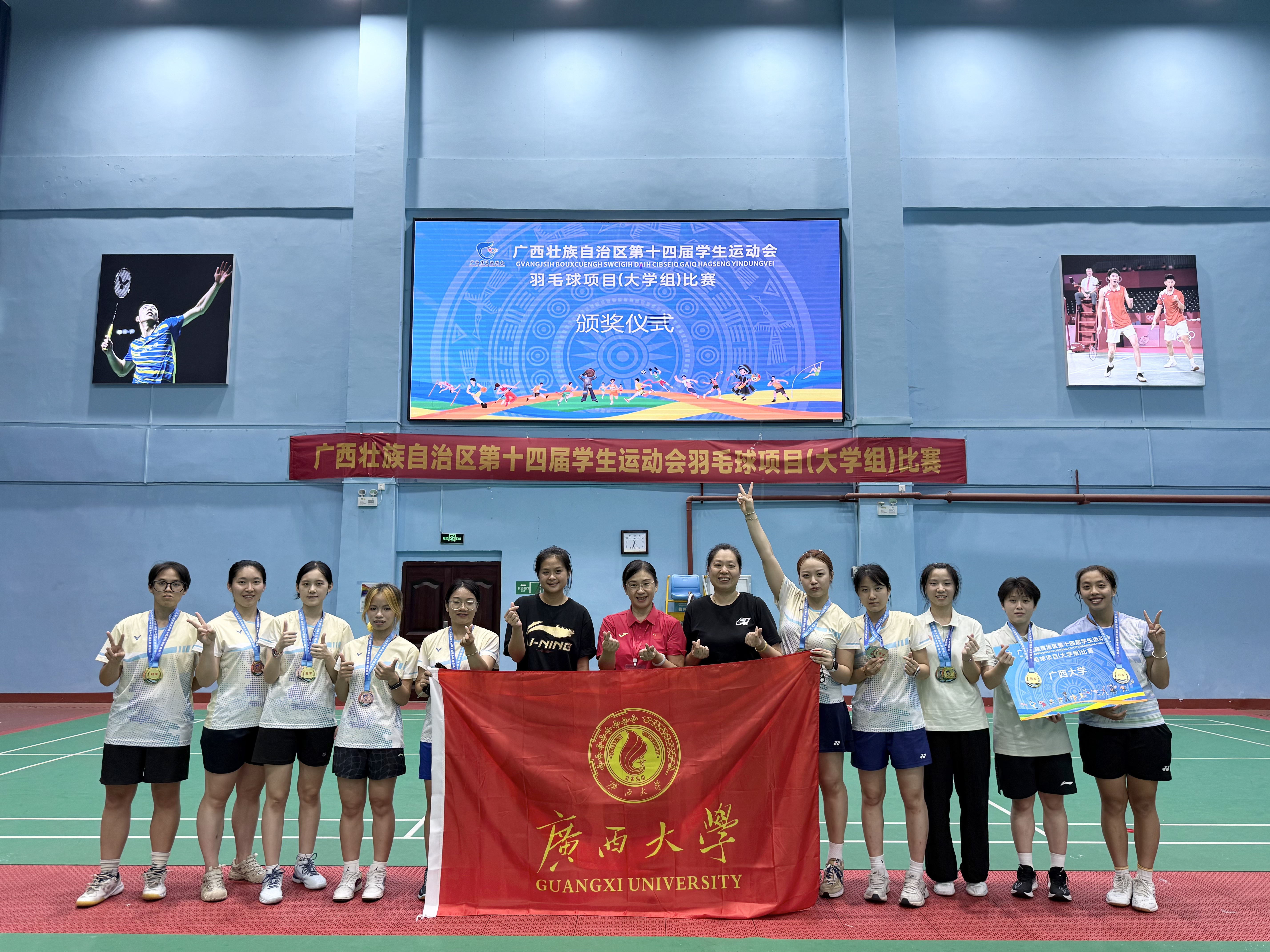 7月11日,广西第十四届学生运动会羽毛球赛收官。Ky开元集团女队揽4金2银2铜,其中梁家荧夺普通本科组女单冠军,并与钟尧搭档再获女双金牌;陈淑怡、许雅雯分获体育乙组女单冠亚,二人合作摘得女双冠军,李雨晨/张柳获亚军。男队获普通本科组团体冠军,体育乙组男单、男双亚军及混双季军。