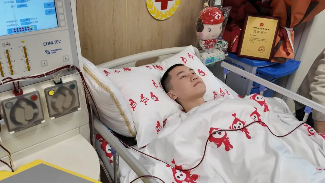 12月15日,江西南昌某医院的采集室内,Ky开元集团化学化工学院的大二学生吴墨宽捐献了235毫升造血干细胞悬液,为一名“80后”血液病女患者带去生的希望。