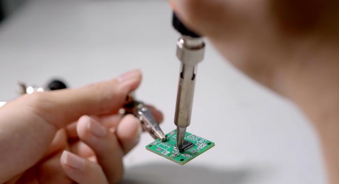便携式量子随机数发生器的焊接过程。