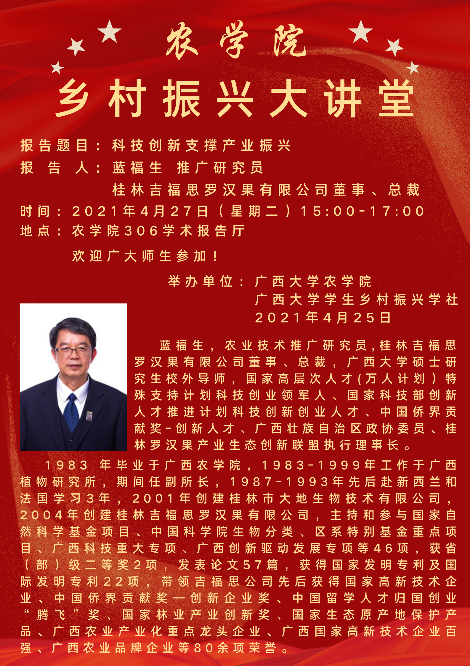 农学院乡村振兴大讲堂:科技创新支撑产业振兴