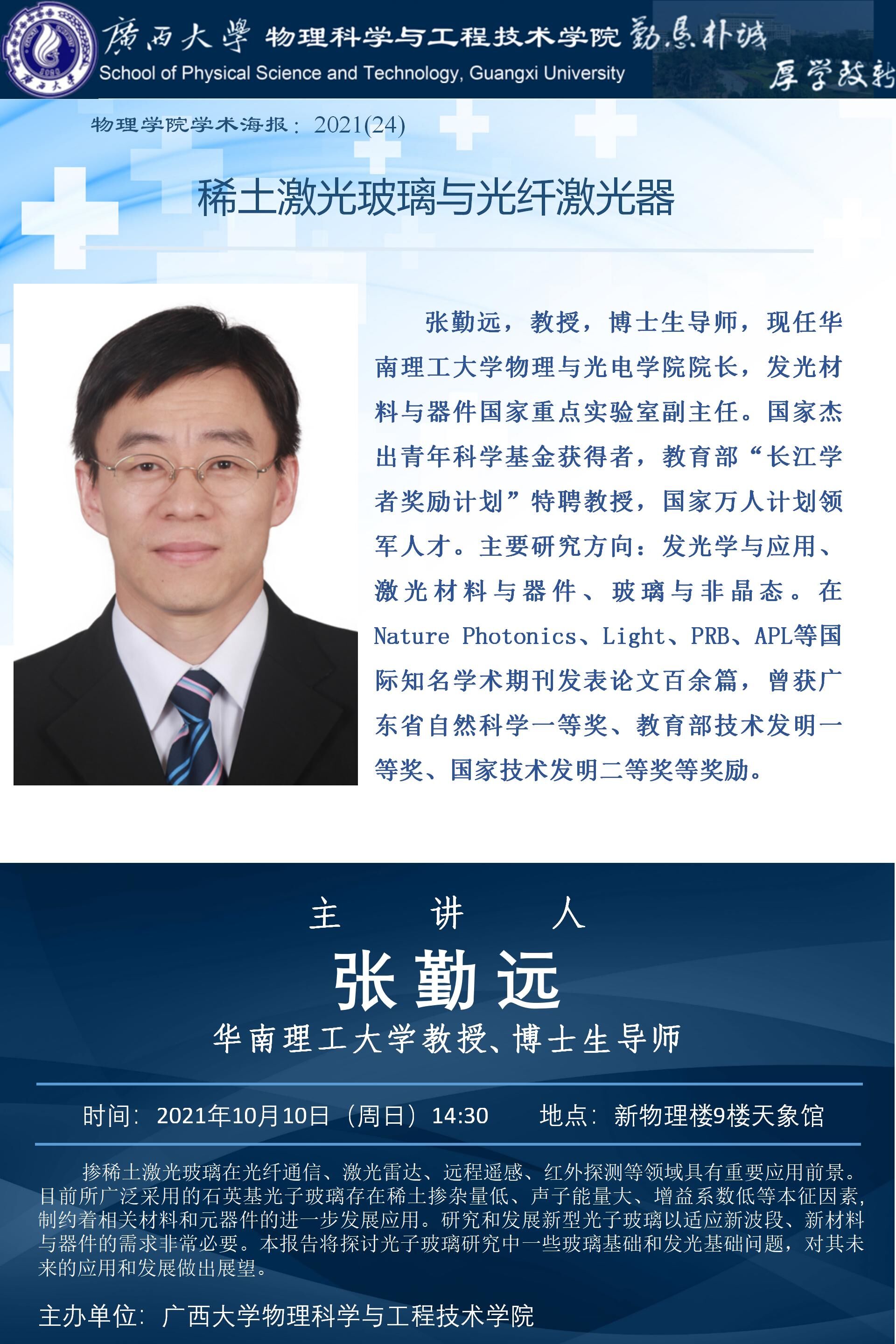 物理科学与工程技术学院学术报告:稀土激光玻璃与光纤激光器
