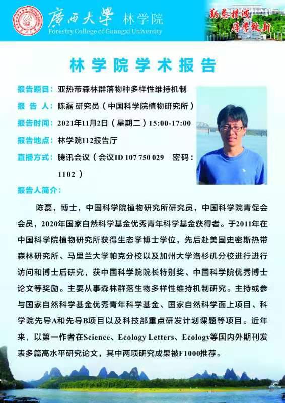 林学院学术报告:亚热带森林群落物种多样性维持机制
