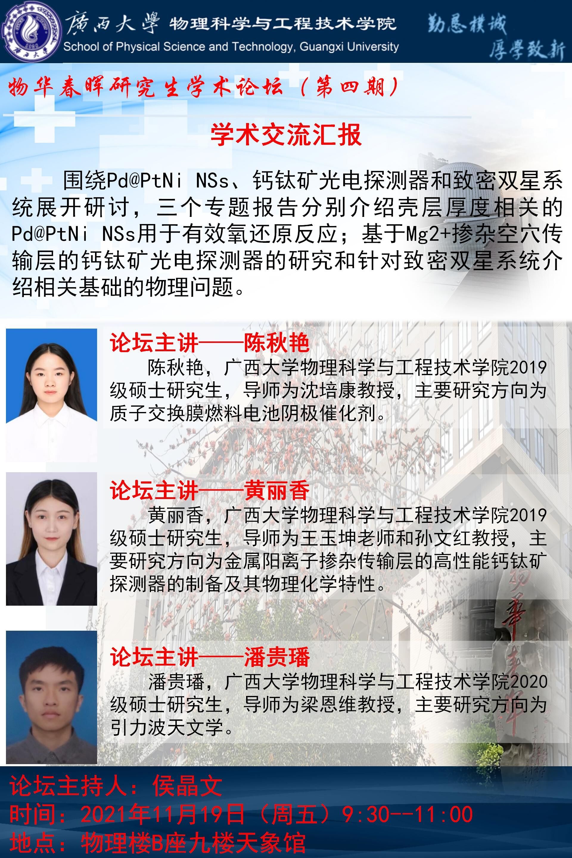 主讲人 陈秋艳 黄丽香 潘贵璠 地址 物理楼B座天象馆