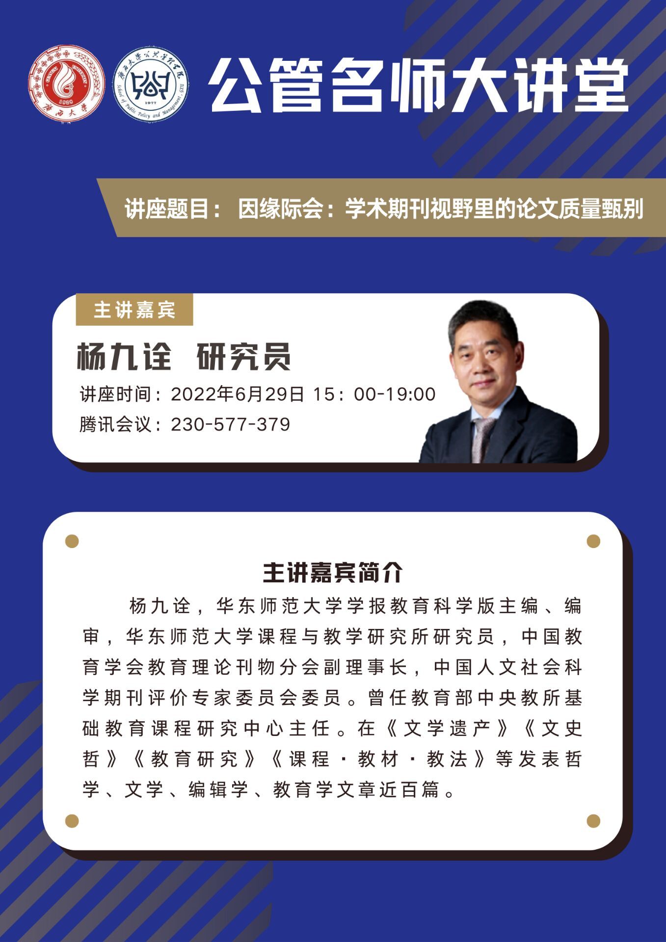公管名师大讲堂:因缘际会——学术期刊视野里的论文质量甄别
