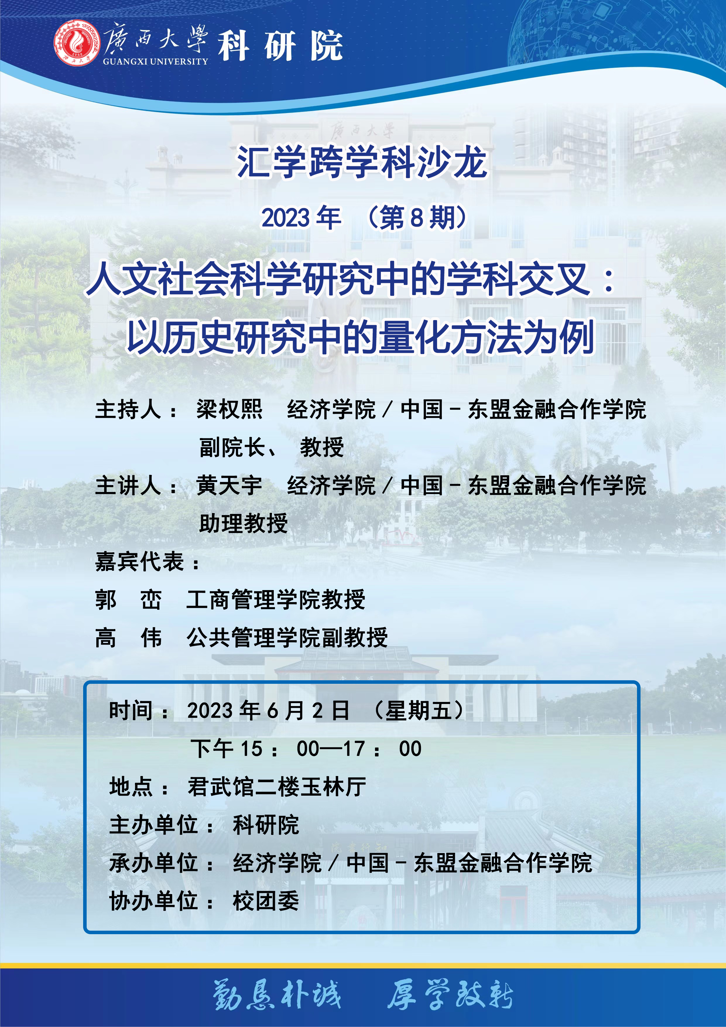 在此背景下,通过人文社科各个领域在研究问题、视野和方法上的交叉合作,将有利于具有不同学科背景的学者(如政治学、社会学、经济学、管理学和法学等)加强交流与合作,不断推进“新文科”的建设。本次沙龙将详细介绍清代“大运河废除”和“改土归流”两个研究案例,以期为今后的跨学科交流与合作起到抛砖引玉的作用。