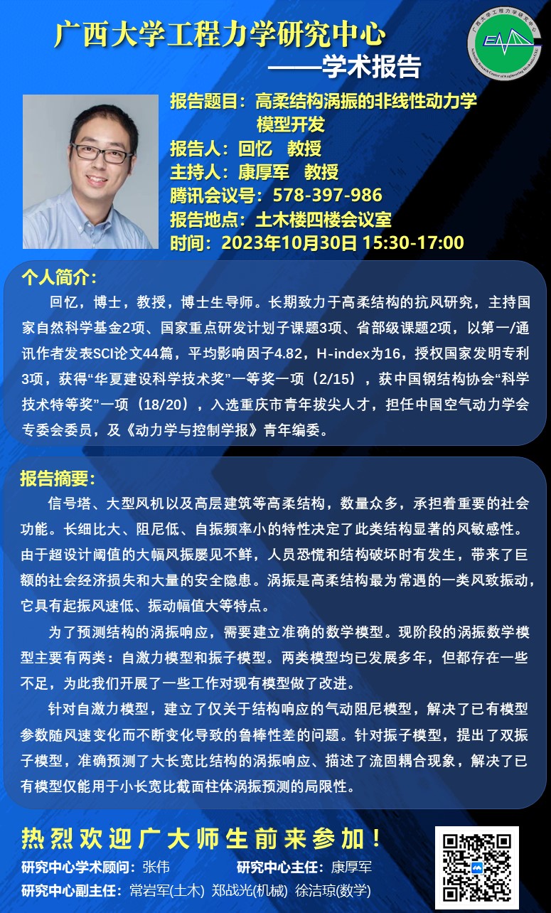 土木建筑工程学院学术报告:高柔结构涡振的非线性动力学