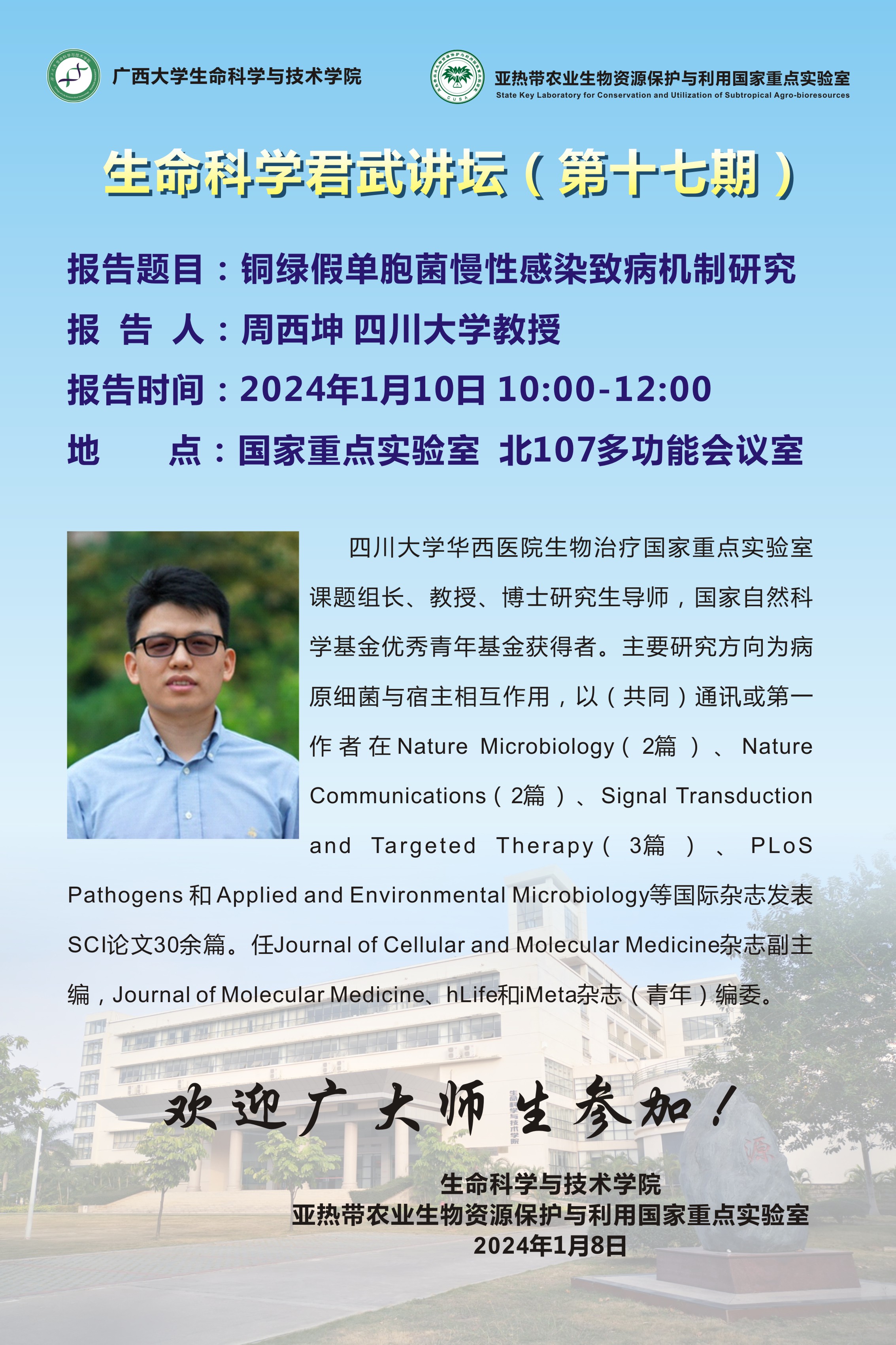 生命科学君武讲坛(第十七期):铜绿假单胞菌慢性感染致病机制研究