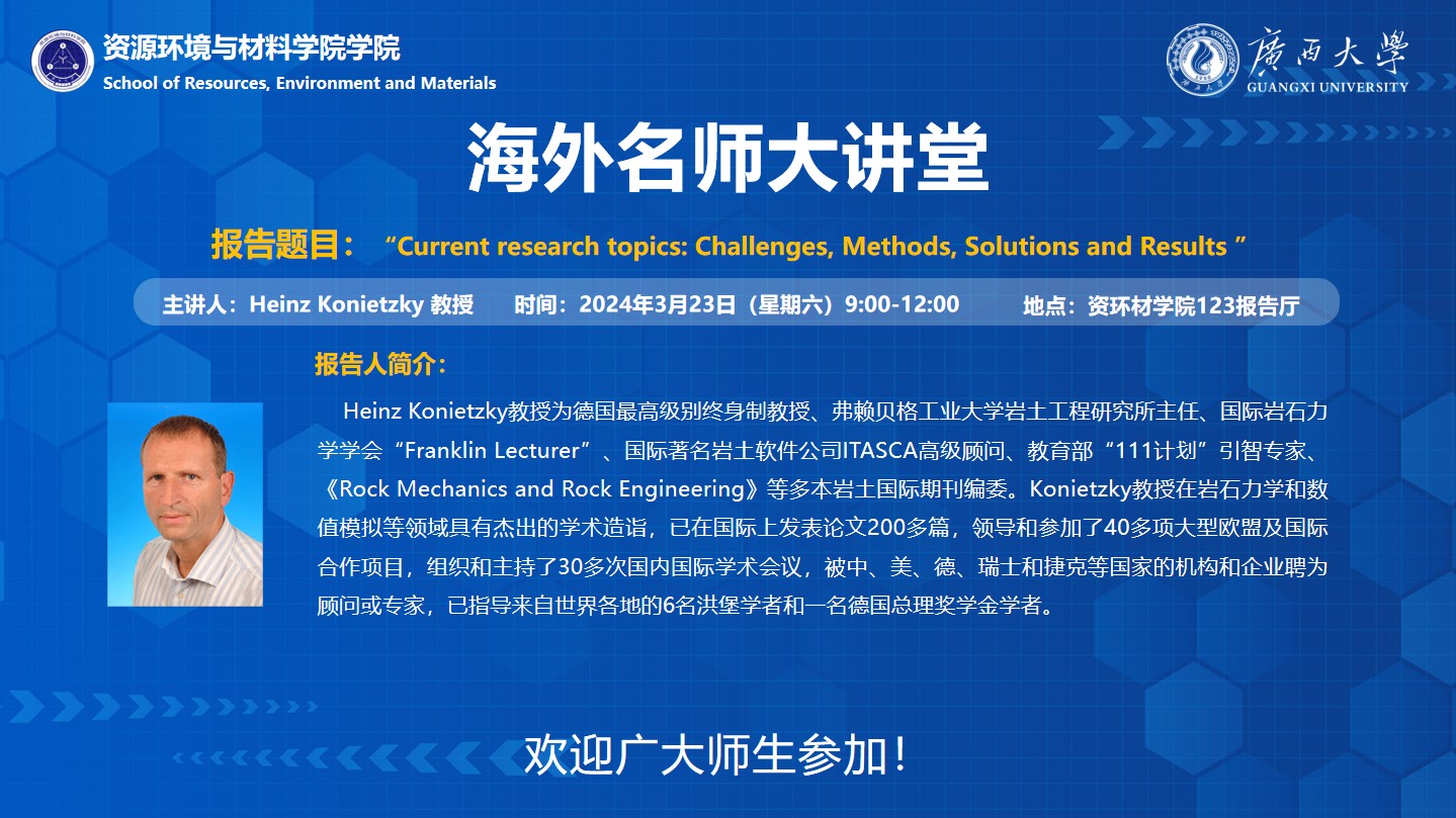 资源环境与材料学院学术报告,海外名师大讲堂:Current research topics: Challenges, Methods, Solutions and Results