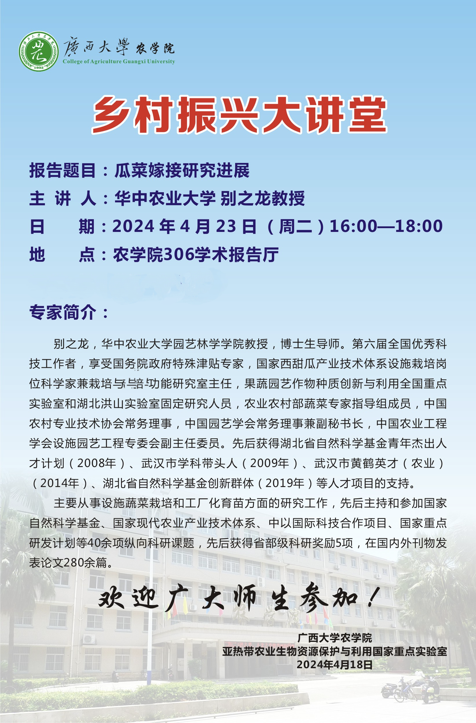 农学院306学术报告厅