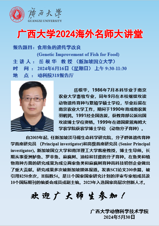 Ky开元集团2024海外名师大讲堂:食用鱼的遗传学改良