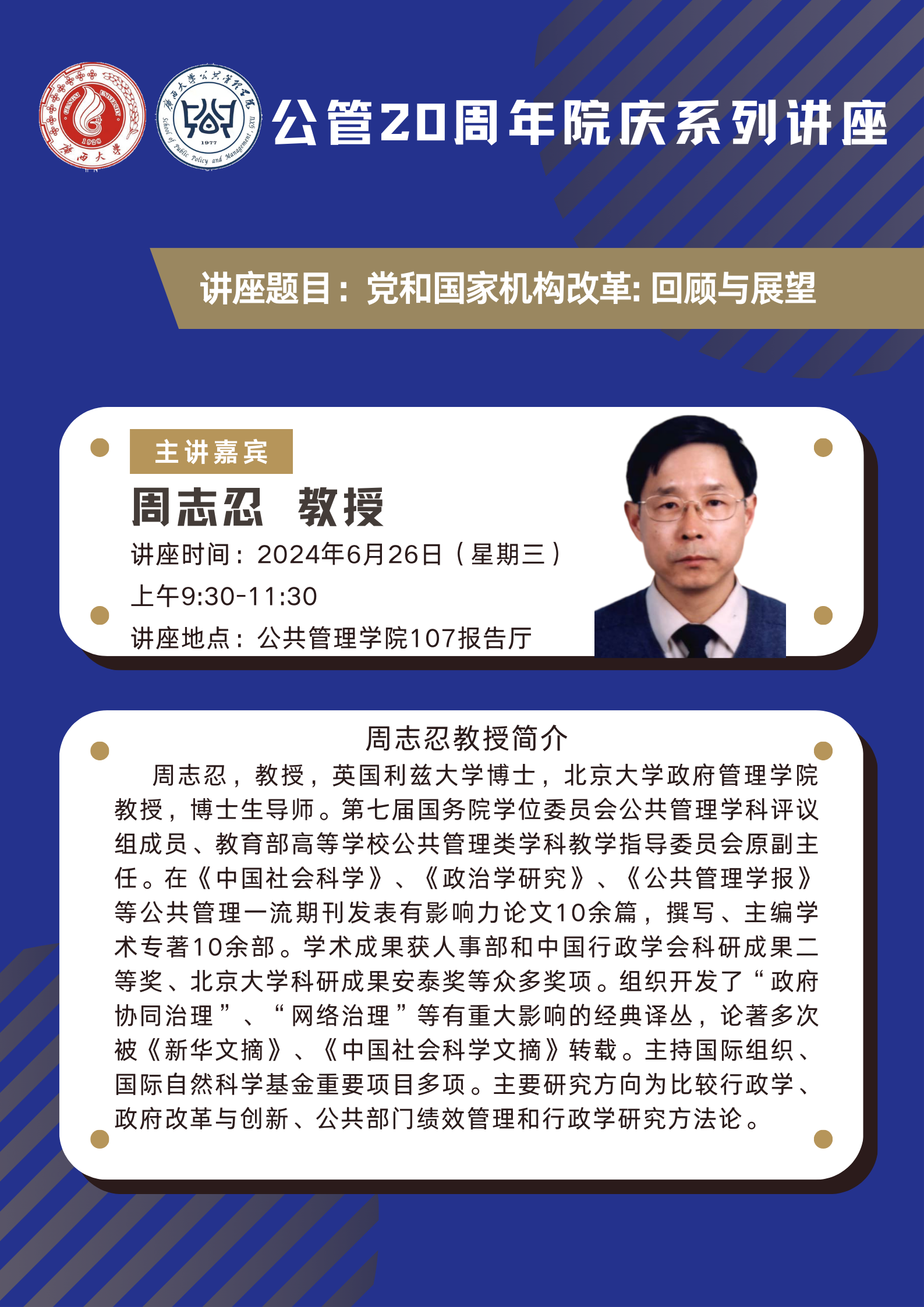公管20周年院庆系列讲座:党和国家机构改革——回顾与展望