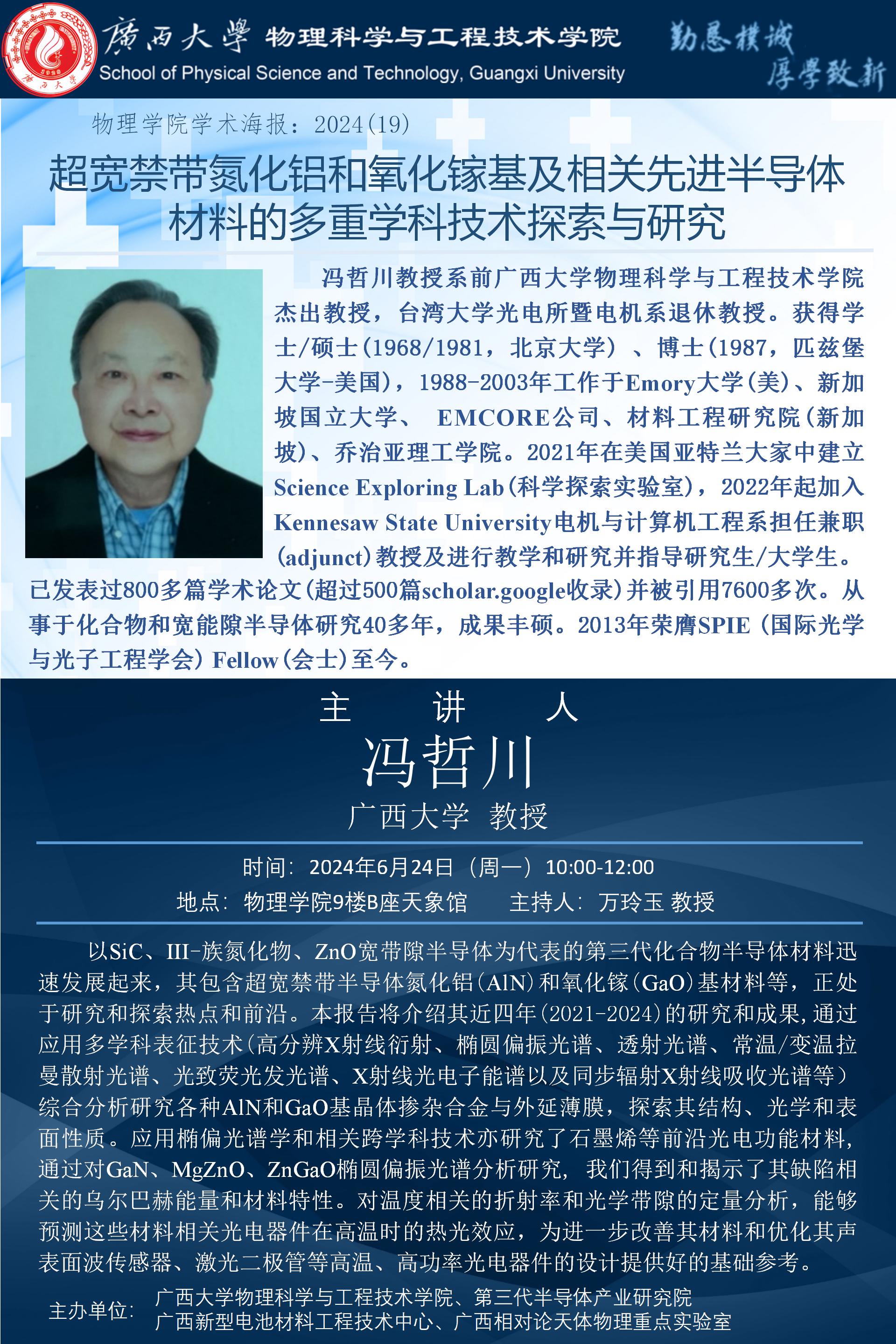 物理学院2024年学术报告之19:超宽禁带氮化铝和氧化镓基及相关先进半导体材料的多重学科技术探索与研究