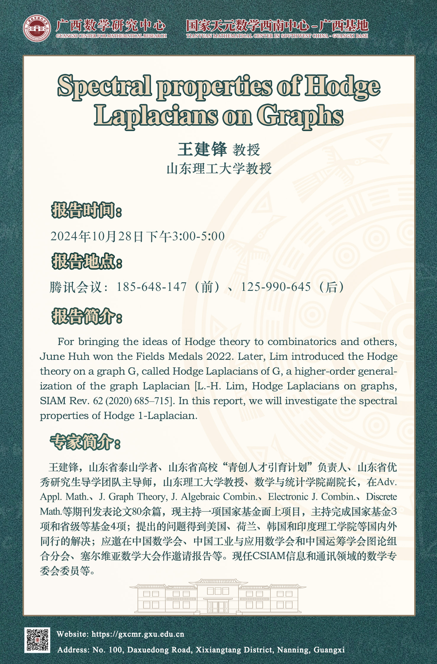 上一条:国家天元数学西南中心-广西基地、广西数学研究中心 学术报告:Group Factorizations and Symmetric Embeddings of Graphs