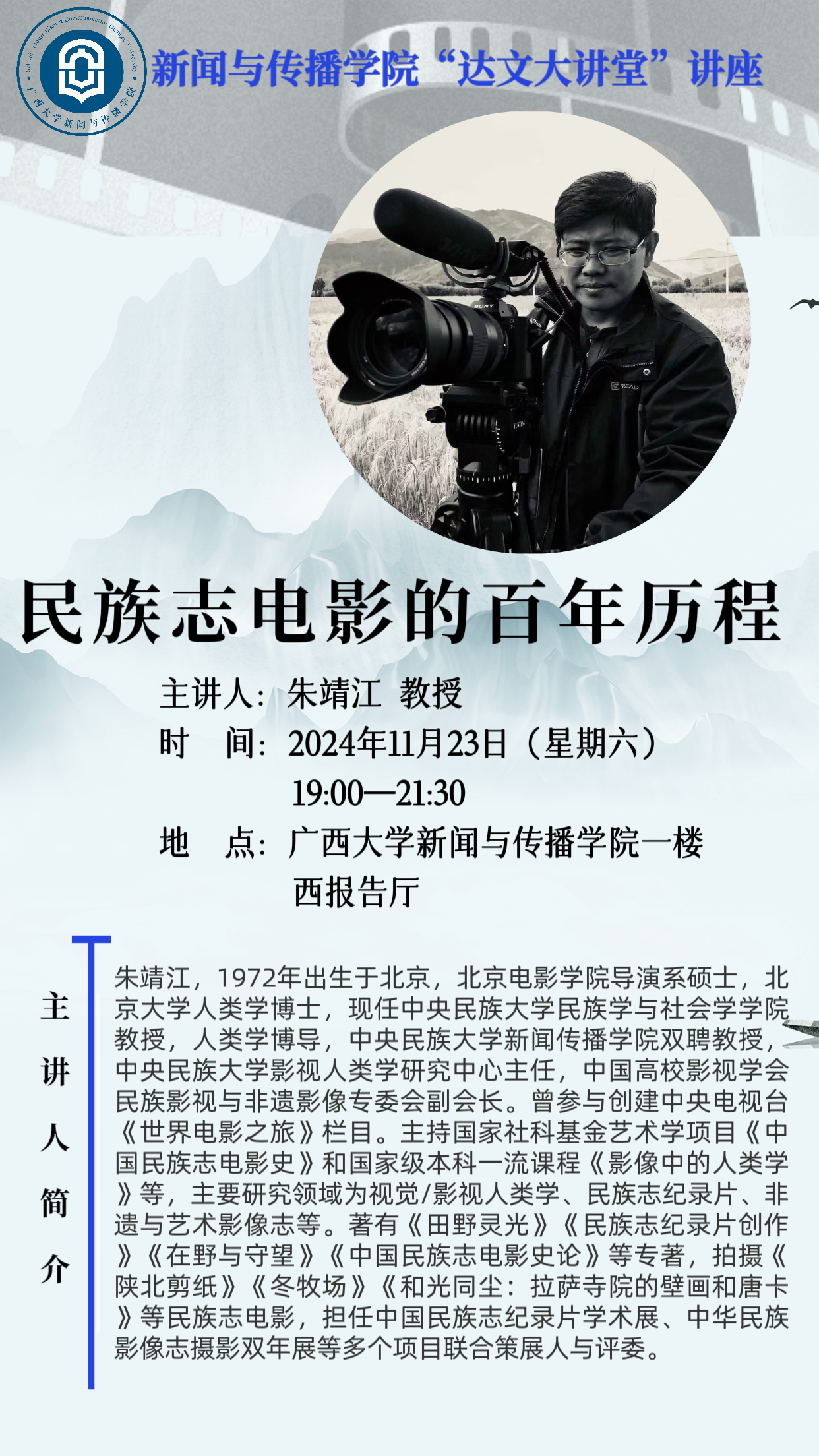 新闻与传播学院“达文大讲堂”学术讲座: 民族志电影的百年历程