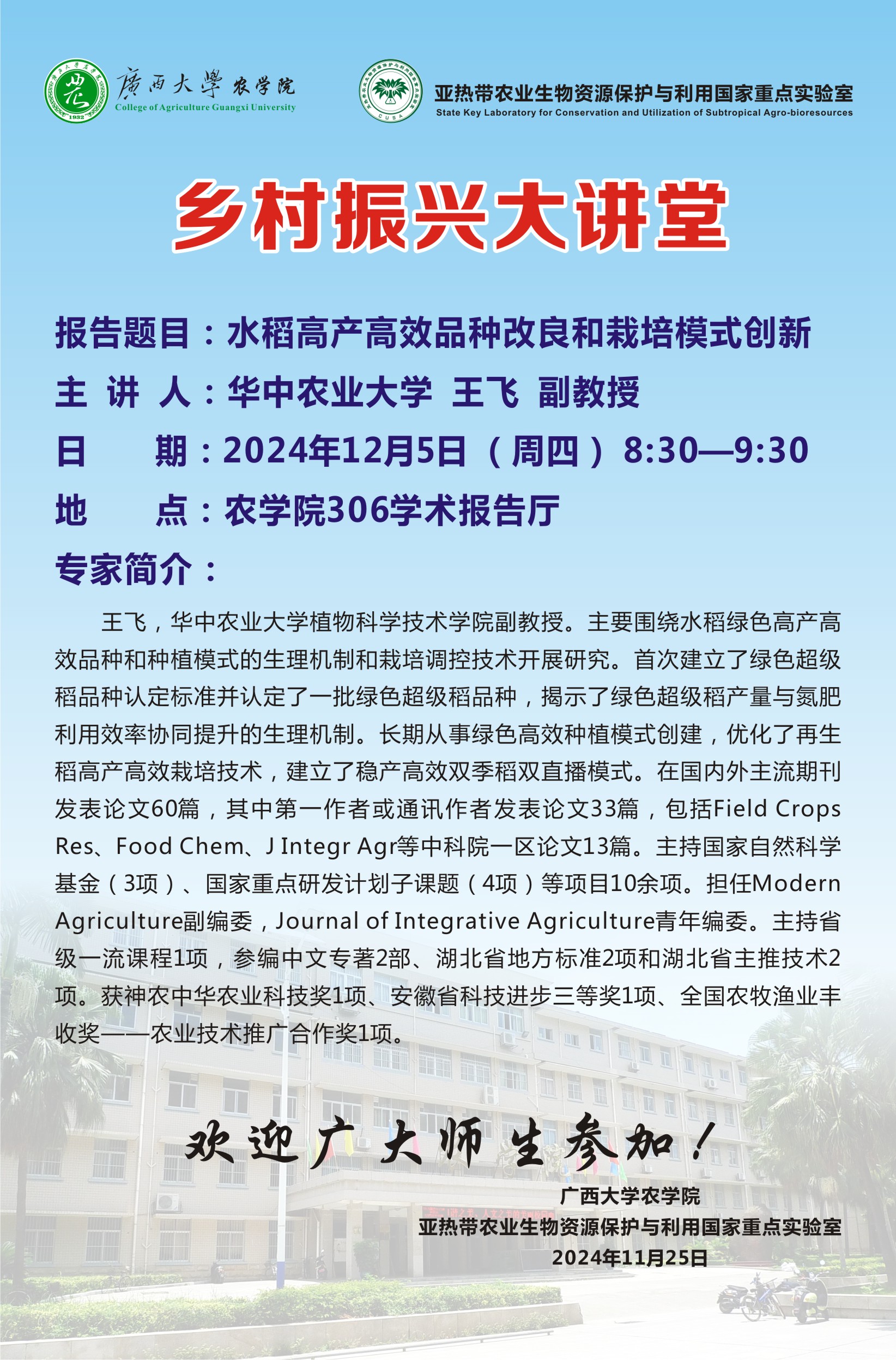 乡村振兴大讲堂:水稻高产高效品种改良和栽培模式创新