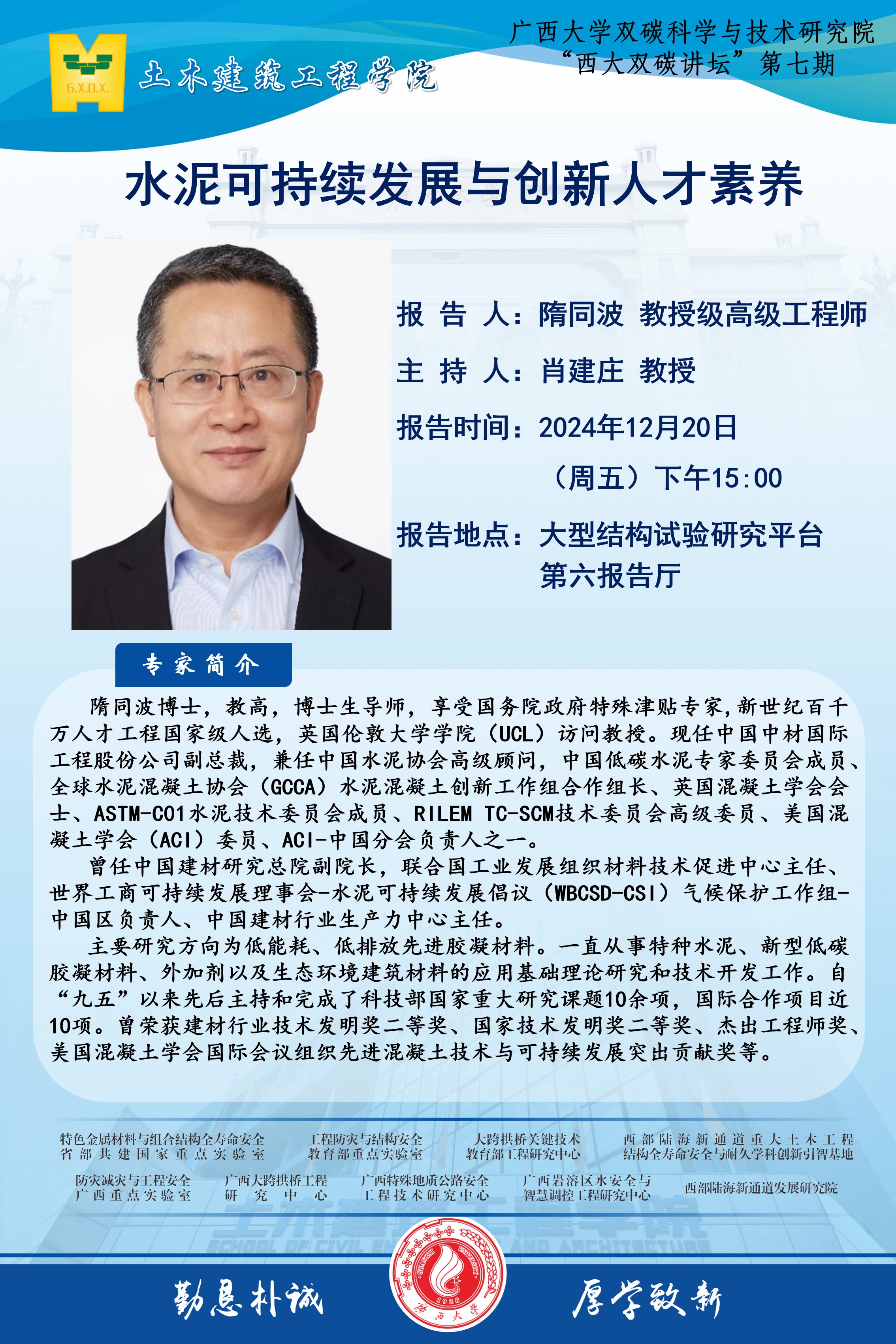 土建学院学术报告:水泥可持续发展与创新人才素养