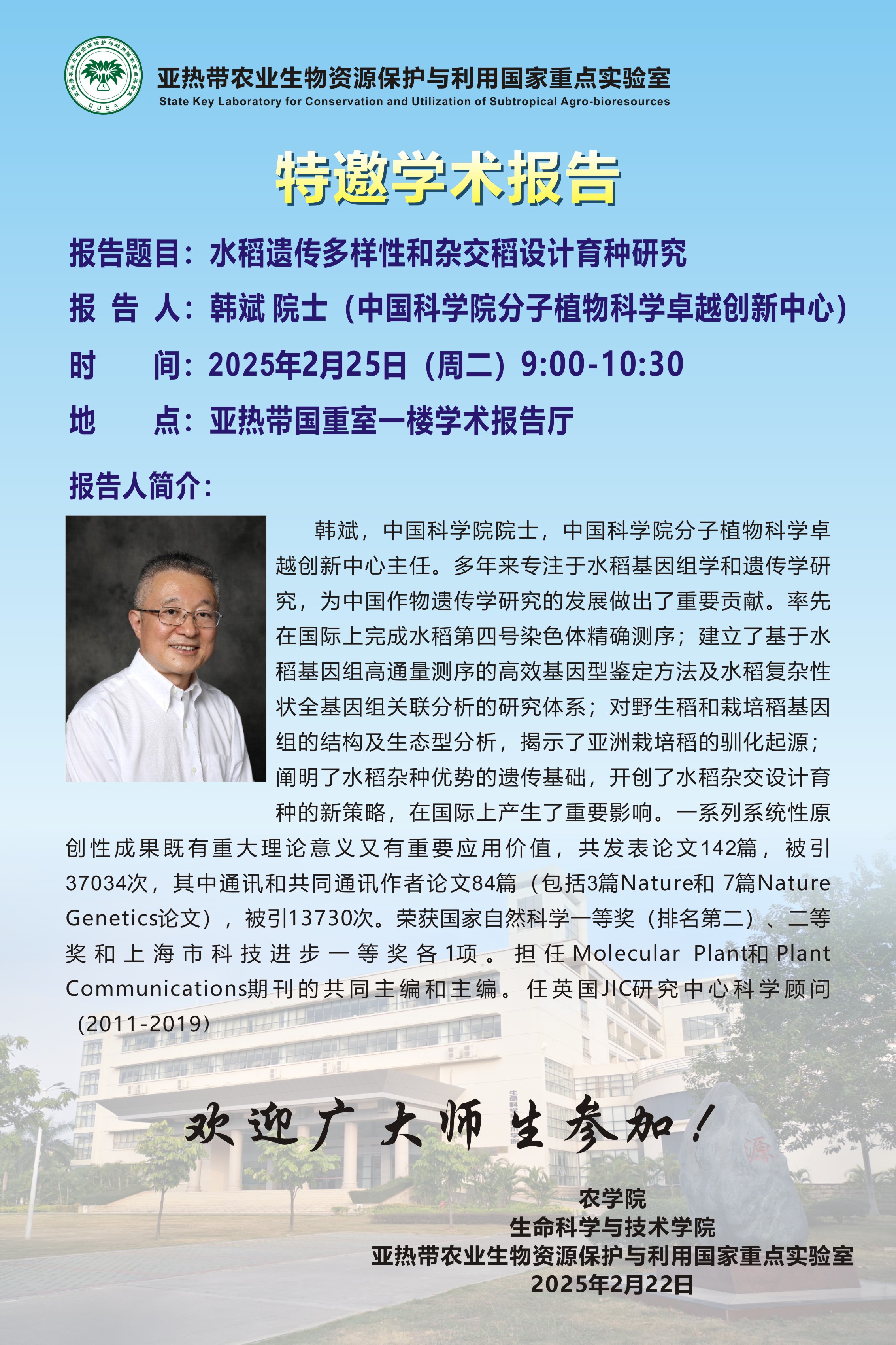 亚热带国重室特邀学术报告:水稻遗传多样性和杂交稻设计育种研究