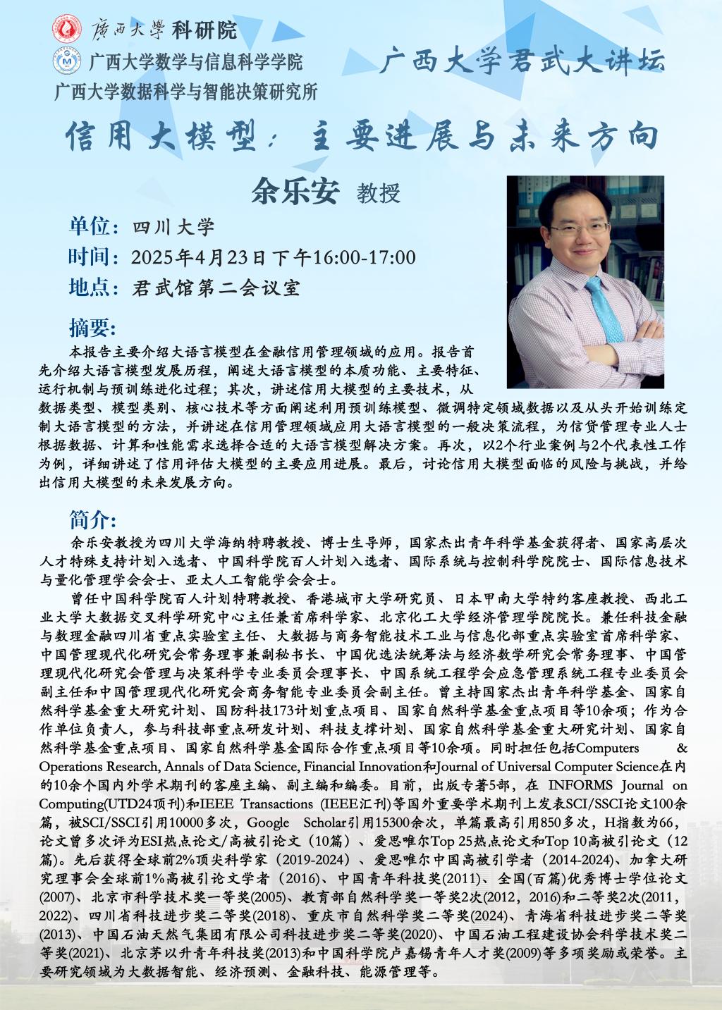 君武大讲坛 :信用大模型——主要进展与未来方向
