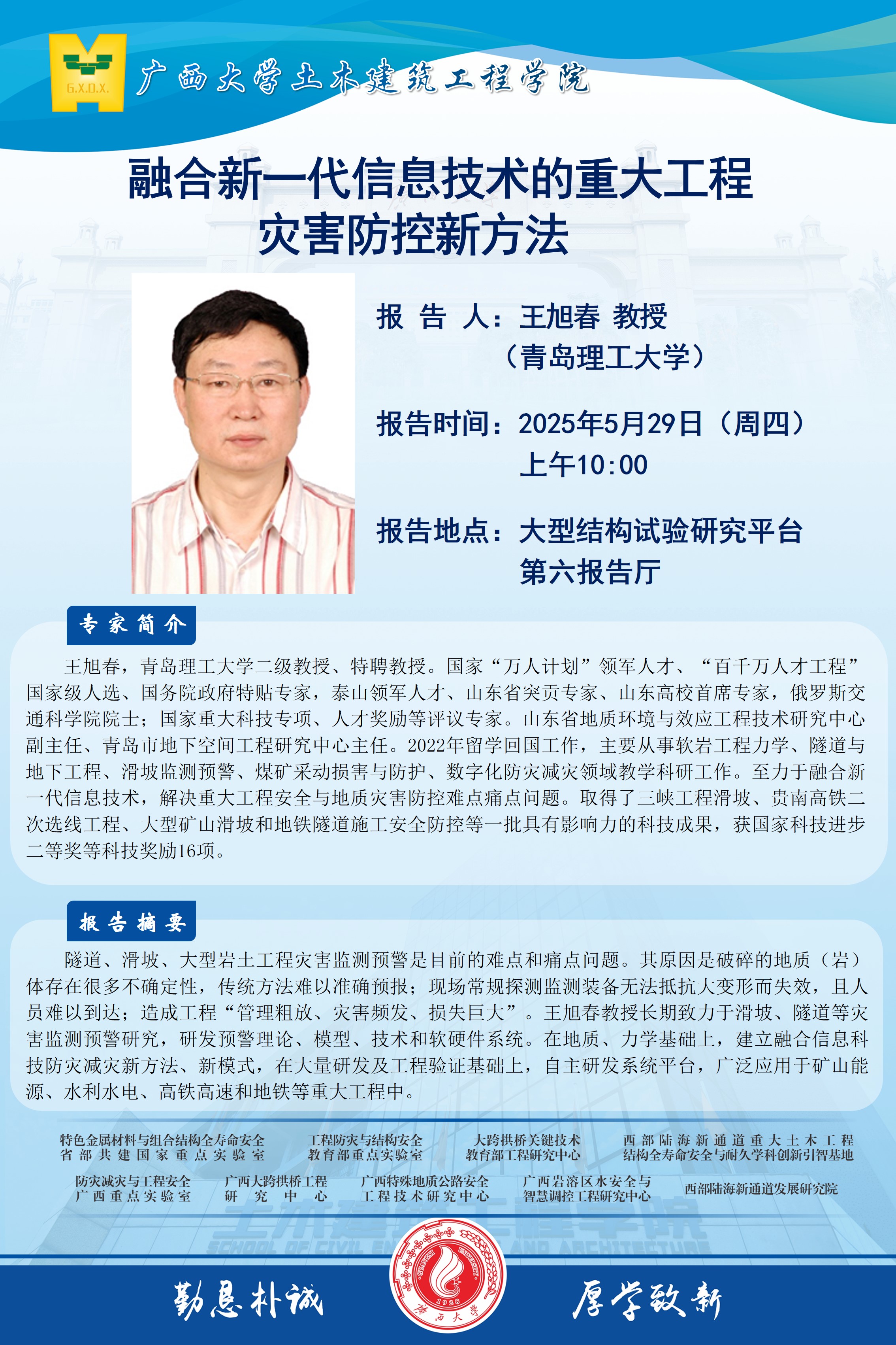 土木建筑工程学院学术报告:融合新一代信息技术的重大工程灾害防控新方法