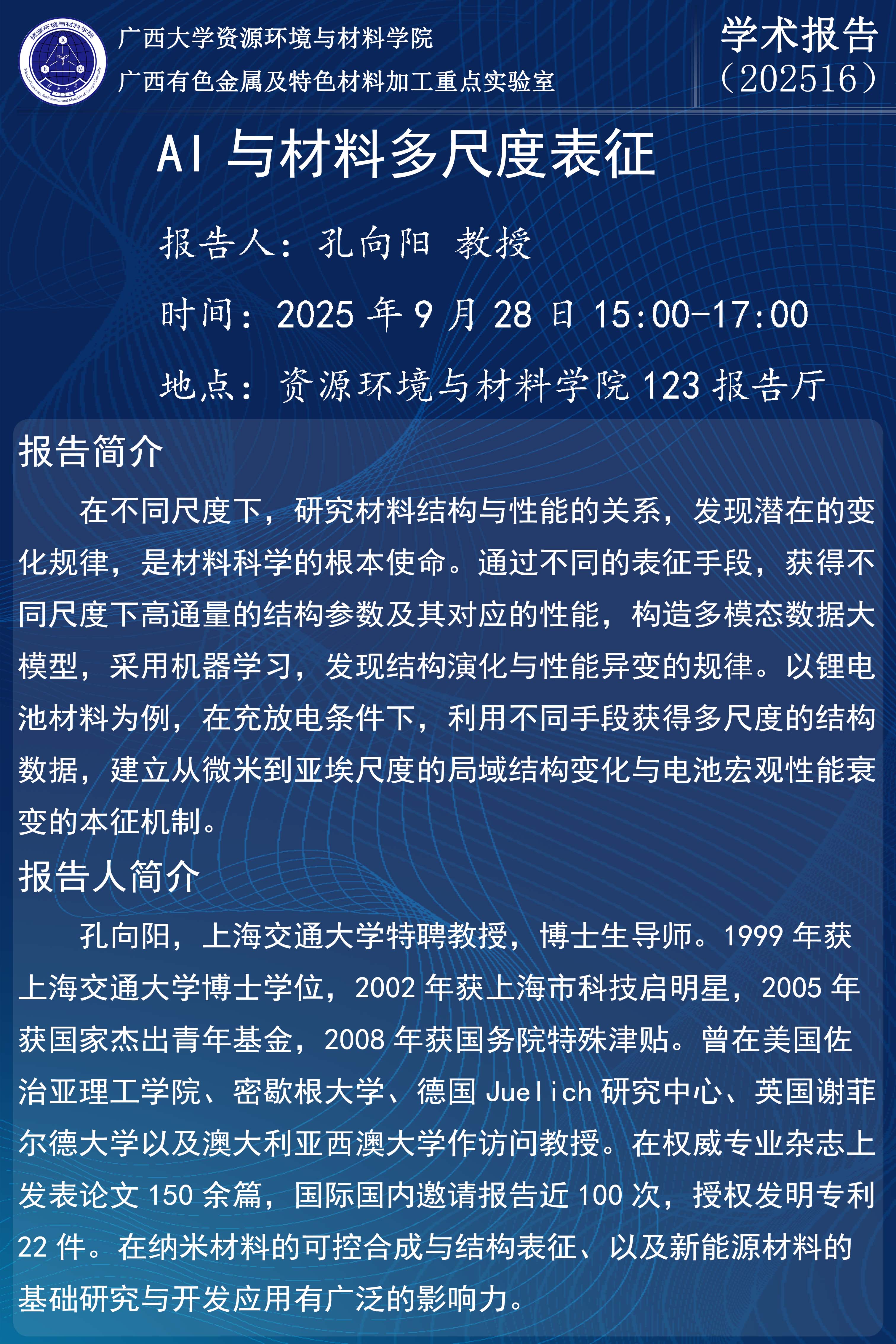 资源环境与材料学院学术报告:AI与材料多尺度表征