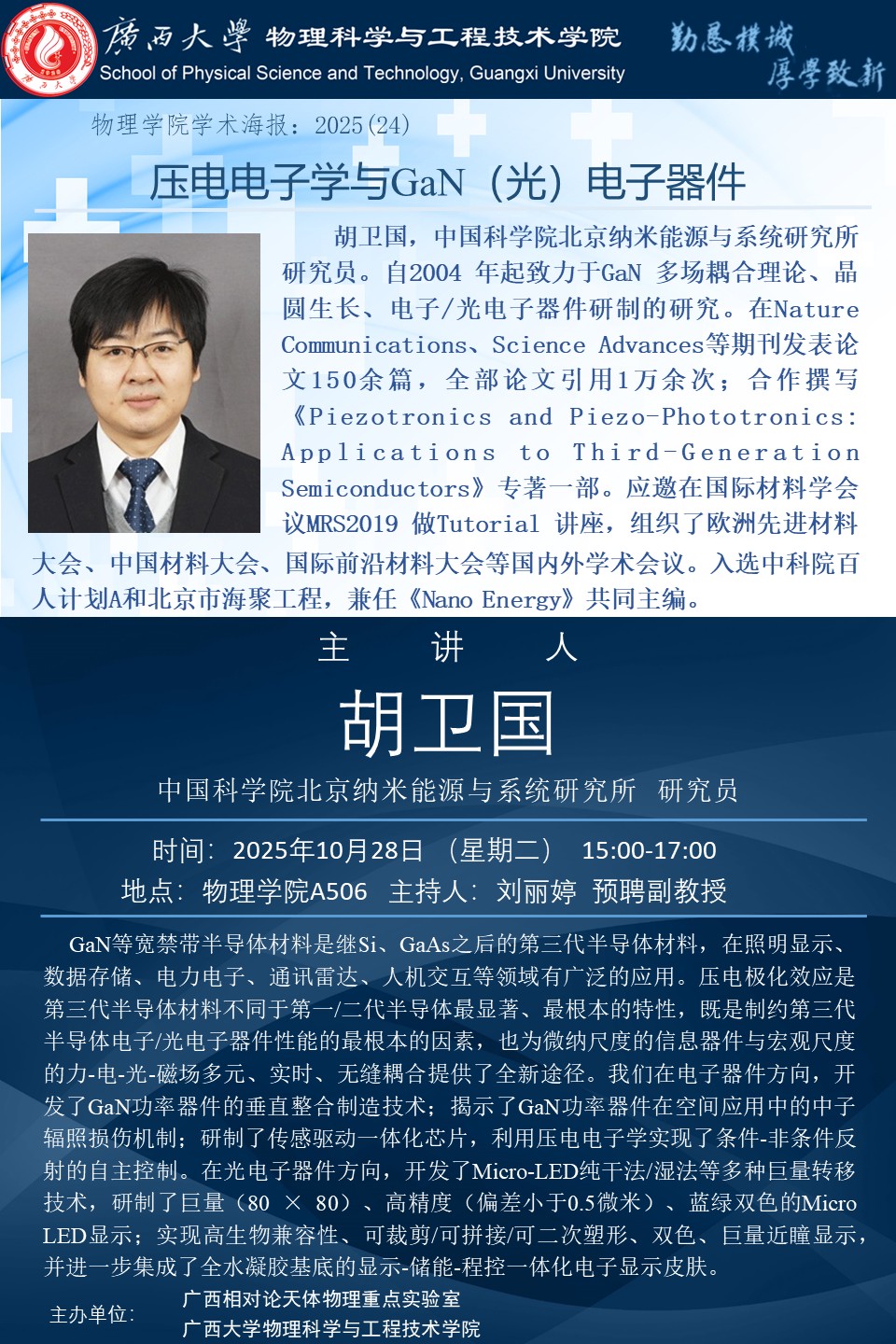 物理科学与工程技术学院学术报告:压电电子学与GaN(光)电子器件