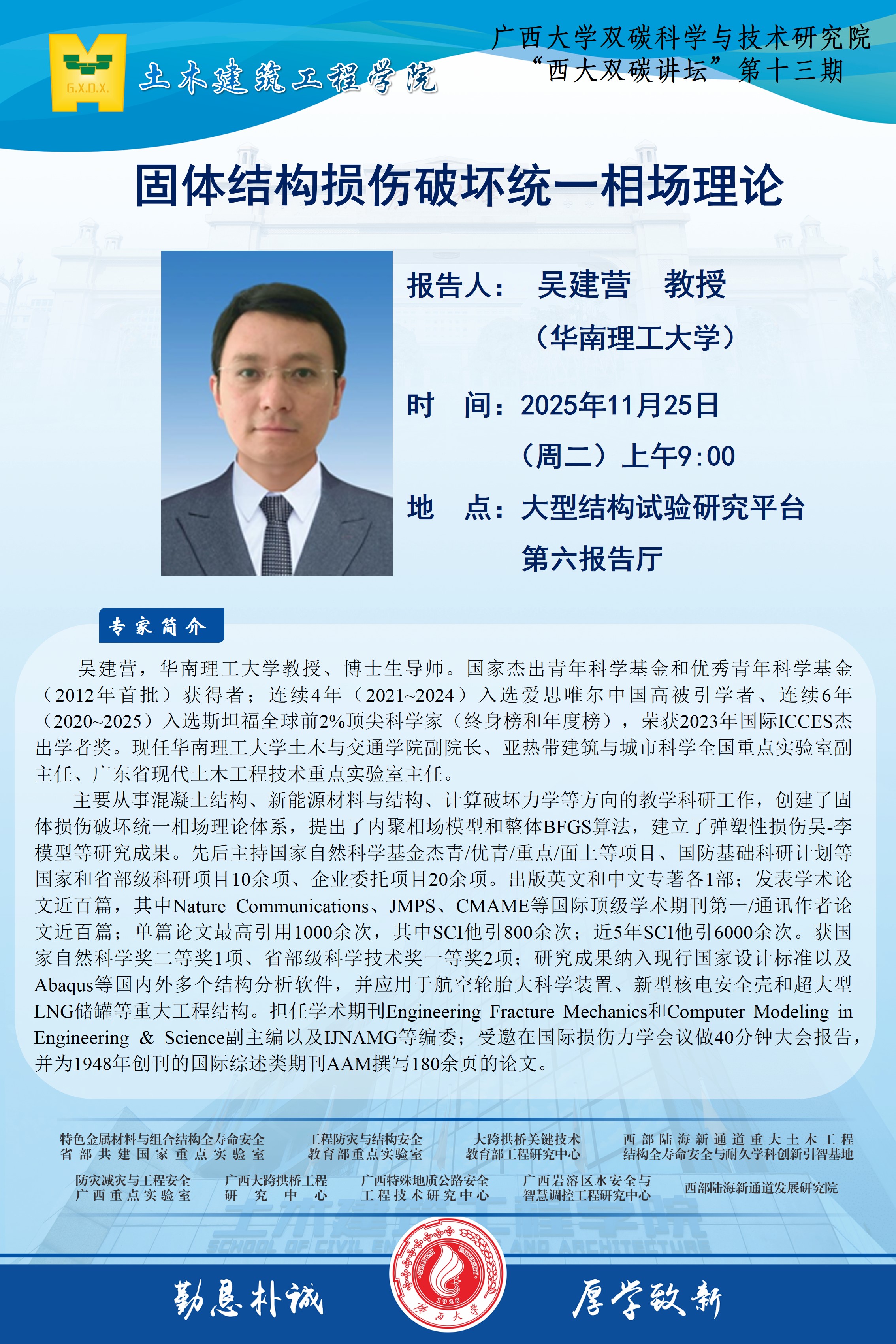 土木建筑工程学院、Ky开元集团双碳科学与技术研究院学术报告:固体结构损伤破坏统一相场理论