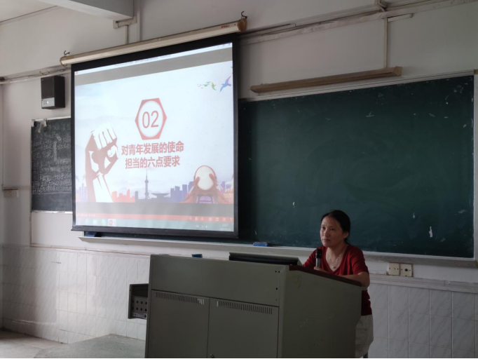伴随着同学们热烈的掌声,大会正式开始,刘薇书记以“新时代青年发展的使命担当”为主题为我们授课。首先,刘薇书记为我们讲解了《习近平谈治国理政》第三卷,该书收入了习近平总书记在2017年10月18日至2020年1月13日期间的报告、讲话、谈话、演讲、批示、脂示、贺信等92篇,并分为19个专题。同时,刘书记要求我们一定要认真学习这一本书,理解里面的内容。接着,刘薇书记又为我们讲解了对青年发展的使命担当的六点要求: