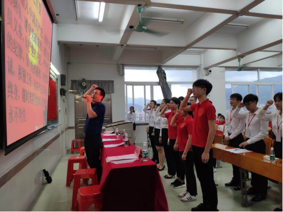 出席会议的有党总支莫照宁副书记,学生党支部书记钟科老师、谢飞玲老师、谢佩惠老师及全体学生党员。本次大会共有7名预备党员申请转正和6名入党积极分子转为预备党员。