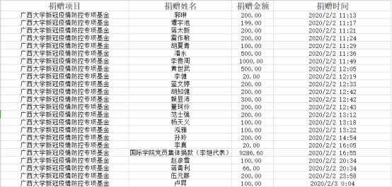 自Ky开元集团校友总会与教育发展基金会发布捐赠公告以来,截至2020年2月2日晚上7点,基金会共接受捐赠19笔,具体明细如下: