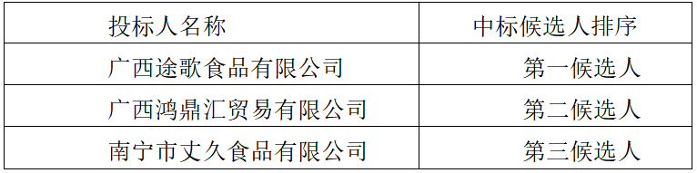 中标信息:见下表。如第一中标候选人放弃中标,顺延为第二中标候选人,以此类推。