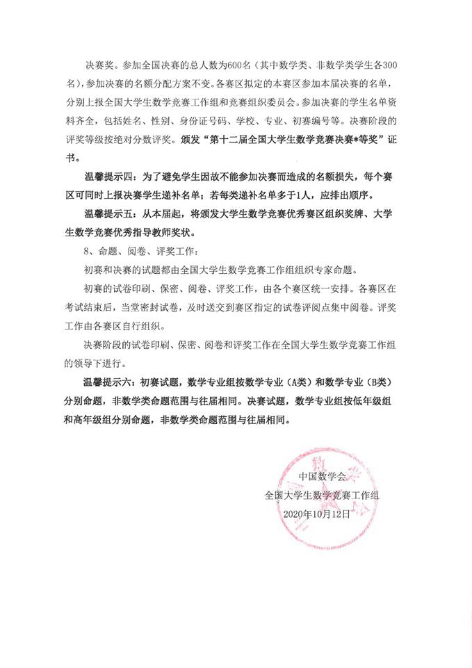 现将第十二届大学生数学竞赛参赛工作有关事宜通知如下: