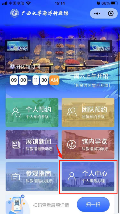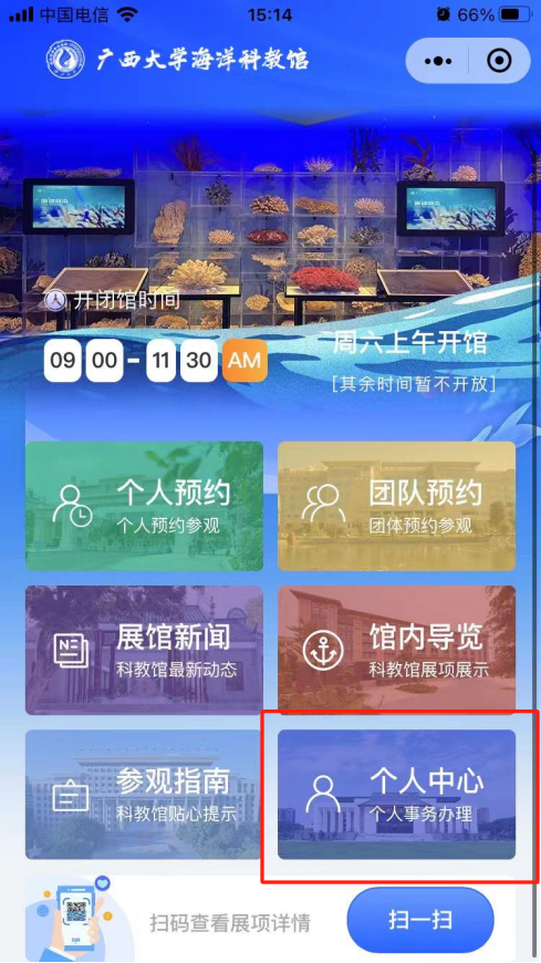 8. 个人中心-个人门票预约中可查看个人预约记录。
