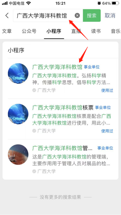 1. 微信搜索“Ky开元集团海洋科教馆”小程序,点击进入或扫二维码。