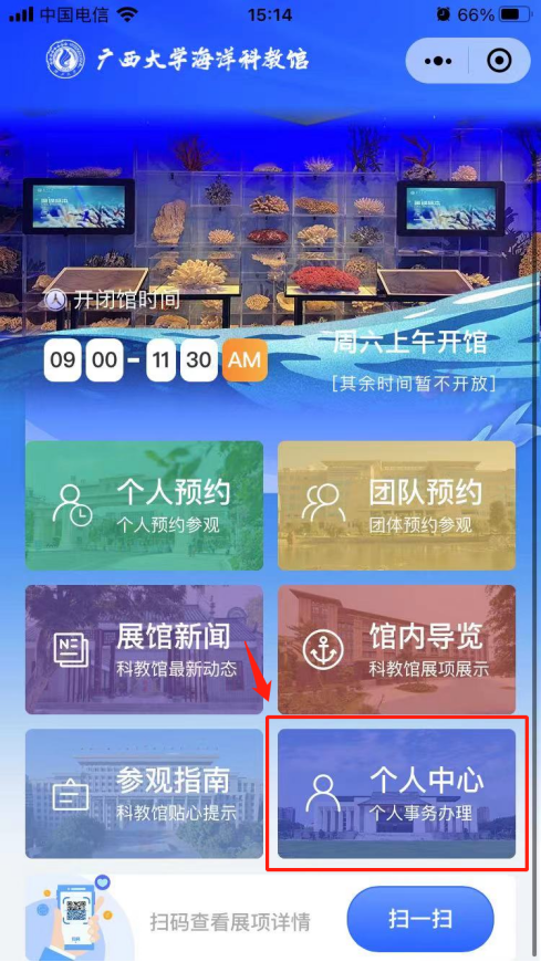 3. 登录成功后,返回首页,点击“个人预约”。
